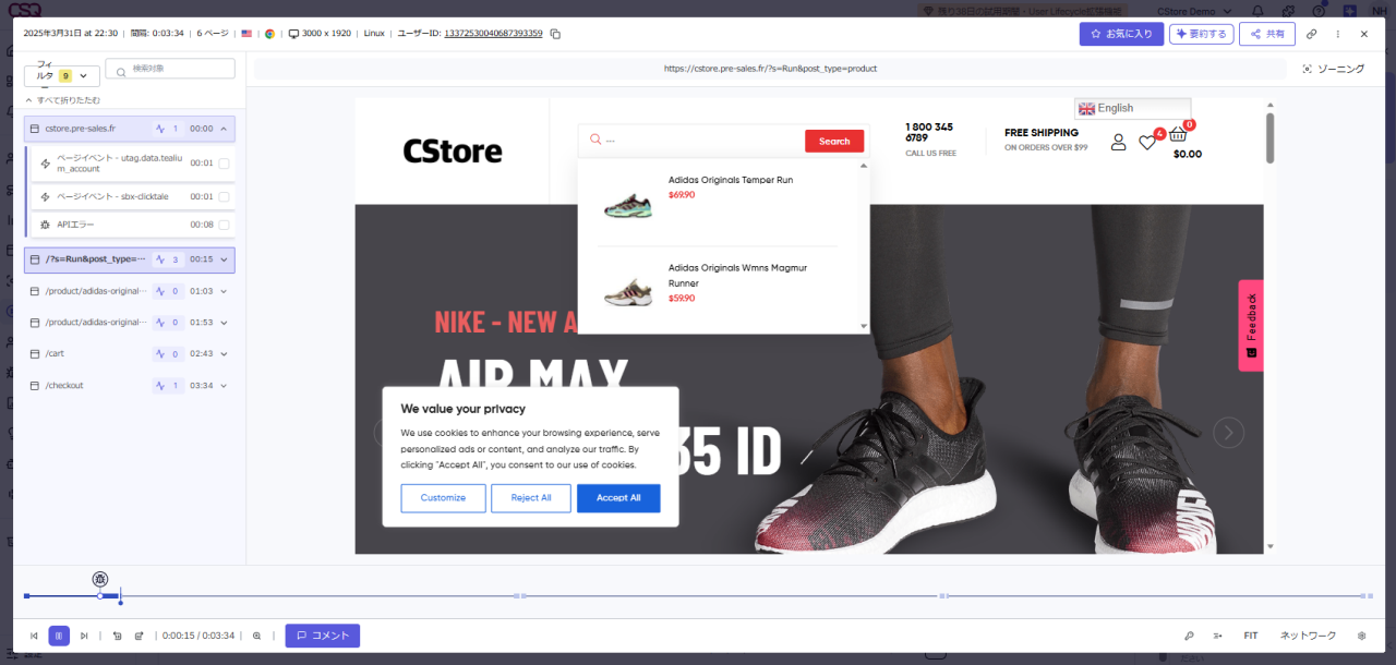 セッションリプレイは、個々のユーザージャーニーを動画形式で再現する機能です。
