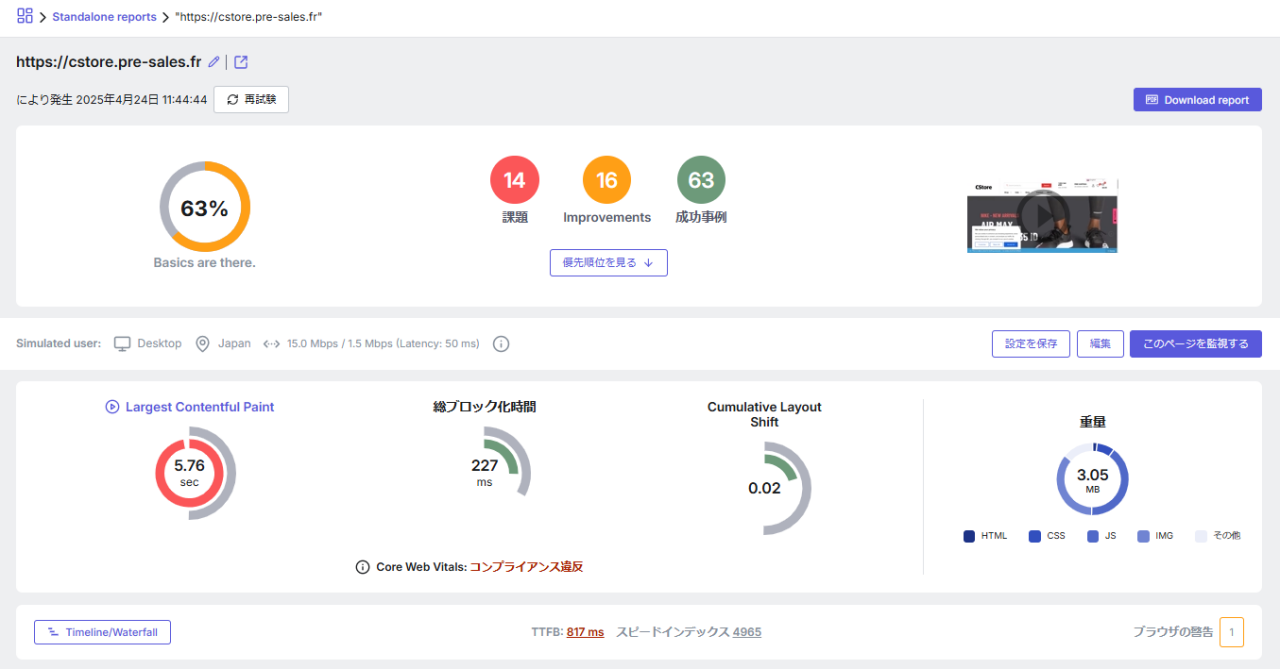 パフォーマンスに問題のあるページを見つけて改善することで顧客満足度の向上を実現します。