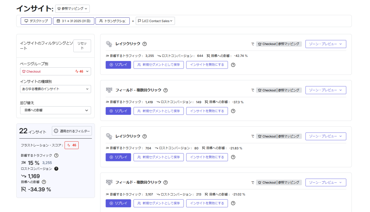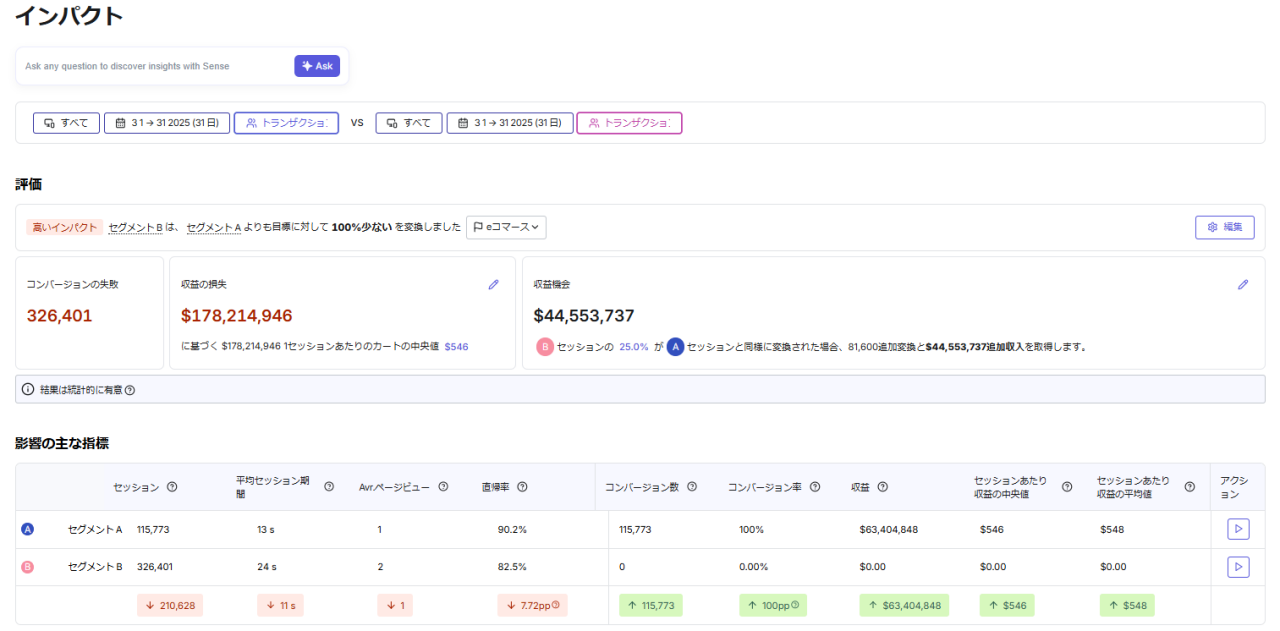インパクト分析は、サイトのどの部分を改善すればどれくらい効果があるかを数字で示す機能です。