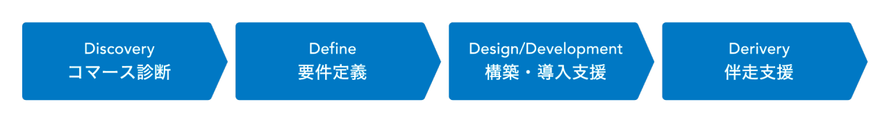 電通デジタルでは、Discovery・Define・Design/Development・Deliveryの4Dアプローチでヘッドレスコマースの検討から導入、伴走支援までトータルでサポート致します。