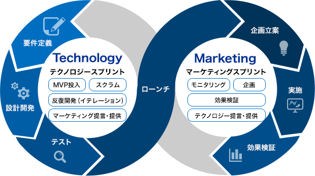 電通デジタルでは、マーケティングとテクノロジーの専門家をワンチームで組成できる強みを活かし、アジャイルに成果を生むプロジェクトをデザインします。