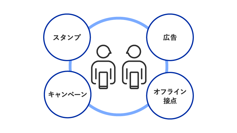 生活者の日常に浸透したプラットフォームを活用し、広告的手法によるユーザー数拡大、1to1メッセージによる理解促進や購買喚起、決済データによる効果検証・最適化をシームレスに支援