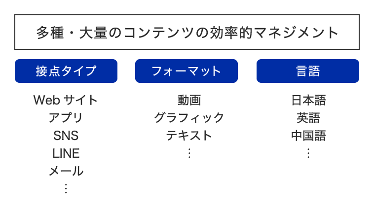 コンテンツ開発とマネジメント顧客とのあらゆる接点において、フォーマットや言語を問わず、CX戦略とテクノロジーにもとづく最適なコンテンツの企画・制作・運用を一気通貫で支援