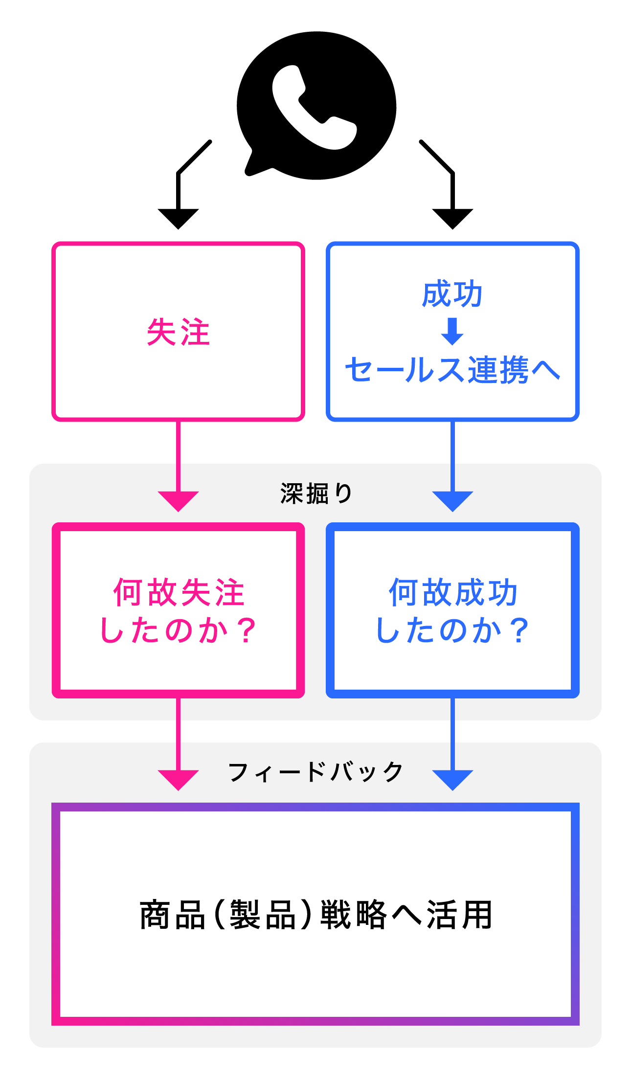 架電が「"なぜ"成功したのか / "なぜ"失敗したのか」を深堀りします。市場・顧客の反応を分析し、次なる戦略へ活用できるかたちでフィードバック致します。