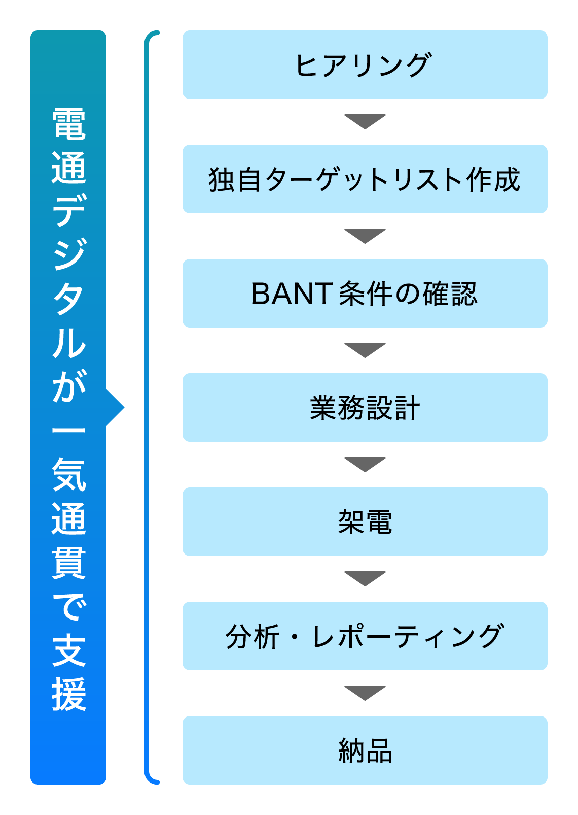 電通デジタルの「Growth Commit with Telemarketing」では、国内電通グループ(dentsu Japan)独自の強みを最大限活用し、最短で成果にコミットするテレマーケティングを実現します。