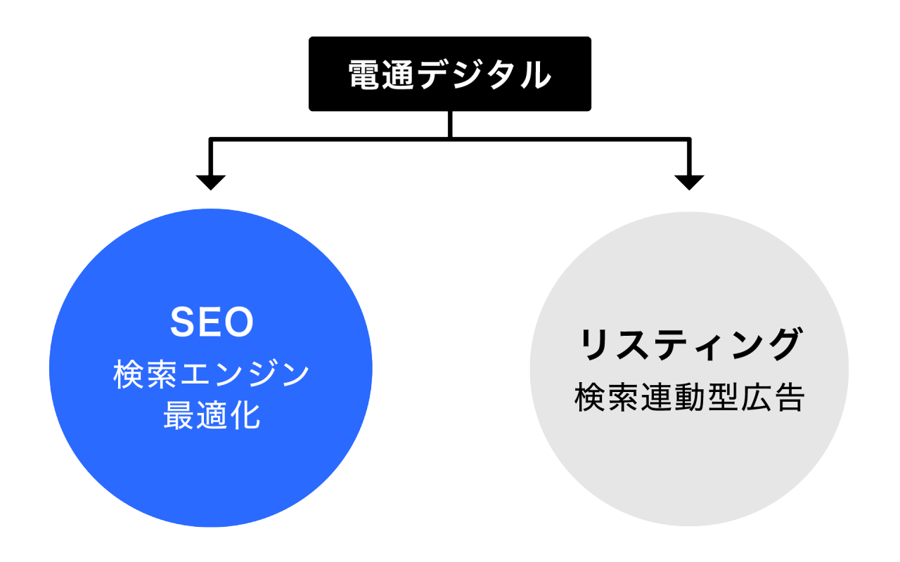 電通デジタルがSEO・リスティング広告施策を一気通貫でサポートいたします。