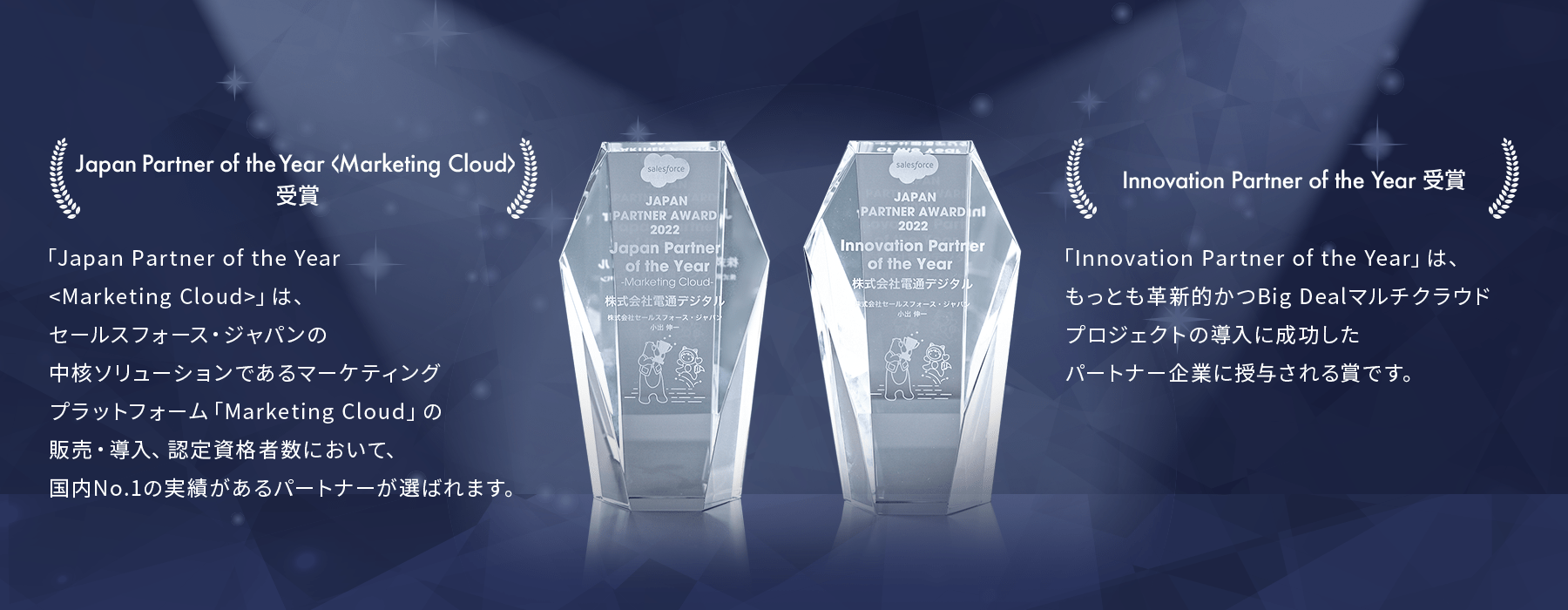 プロダクトとしては、特にMarketing Cloudを得意としており、2020年から3年連続でPartner of the Yearを受賞しています。